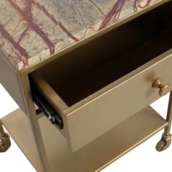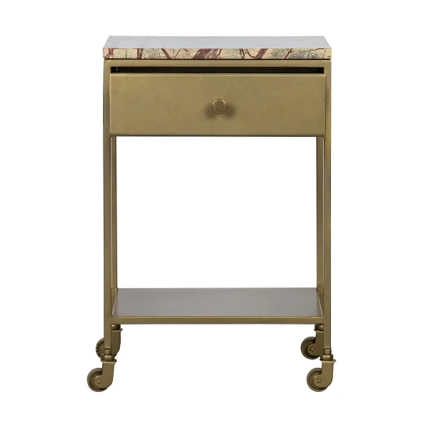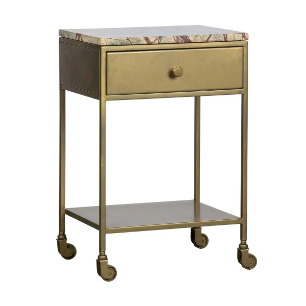Dit BePureHome Clinic nachtkastje op wielen heeft een prachtig bovenblad van echt marmer. Marmer is een natuurproduct met unieke details en kleurvariaties waar je uren naar kunt kijken! Het marmer op dit nachtkastje komt nog beter tot recht dankzij het frame van goud metaal met een antieke afwerking.