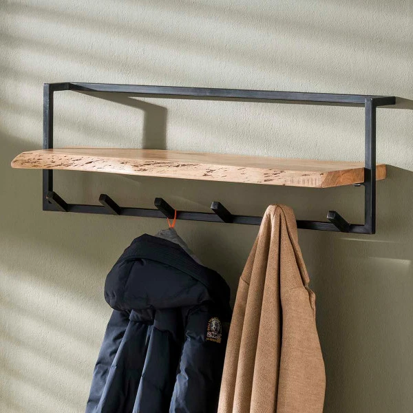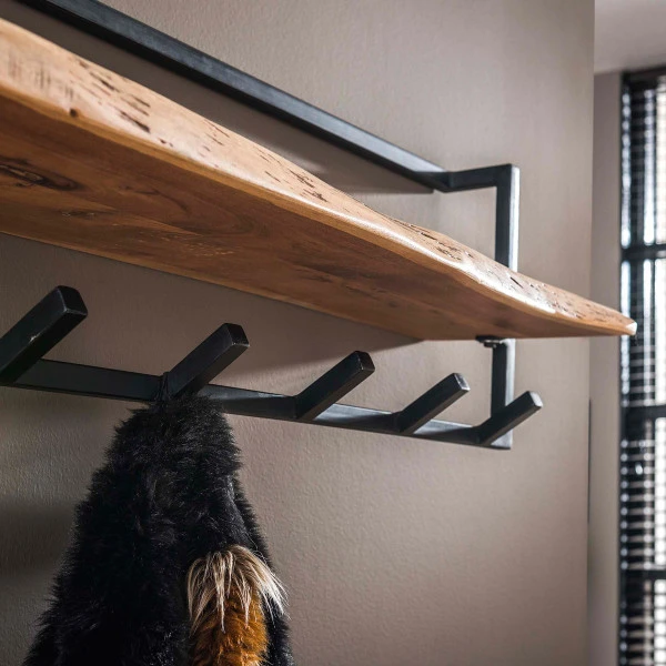 Is deze kapstok met boomstam plank te groot voor jouw hal? In de Poca serie van Santa vind je ook wandkapstokken die slechts 12 centimeter diep steken. Kenmerkend voor de kapstokken uit de serie is de mix van massief acaciahout en geschuurd metaal.