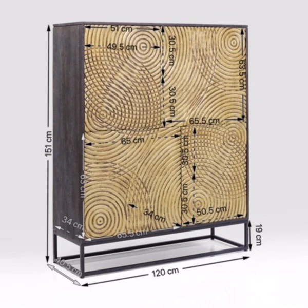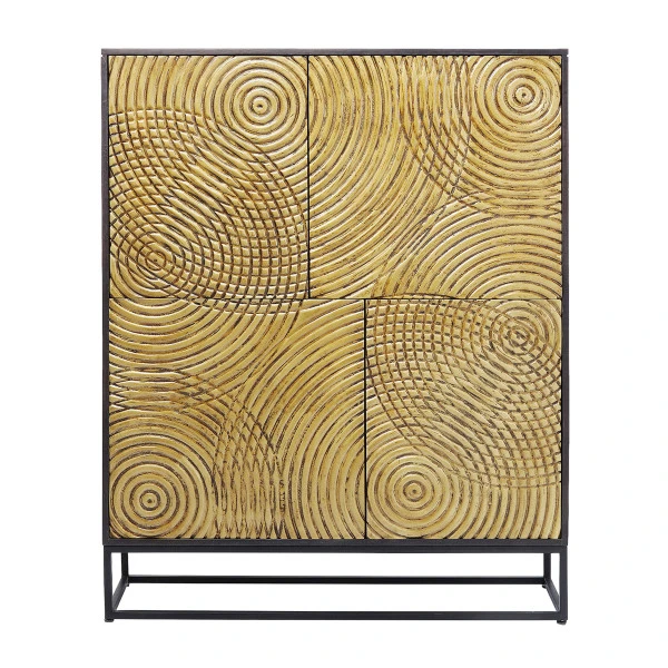 Deze gouden Kare Design Circulo wandkast vormt een chique en stijlvol element in je interieur. De deuren van mangohout zijn voorzien van handmatig snijwerk, voor sierlijke patronen die door een gouden laklaag extra mooi tot recht komen. Met een omvang van 120 bij 150 centimeter is de wandkast echt een bijzondere blikvanger! En natuurlijk ook een handig opbergmeubel voor serviesgoed of administratie.