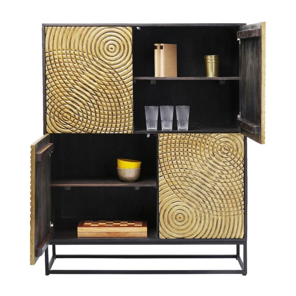 Je herkent de Kare Design Circulo serie meteen aan het bijzondere snijwerk en de gouden afwerking. De meubels zijn gemaakt van massief hout en gelakt staal. Kijk gauw verder voor een bijpassend dressoir om met deze gouden wandkast te combineren!