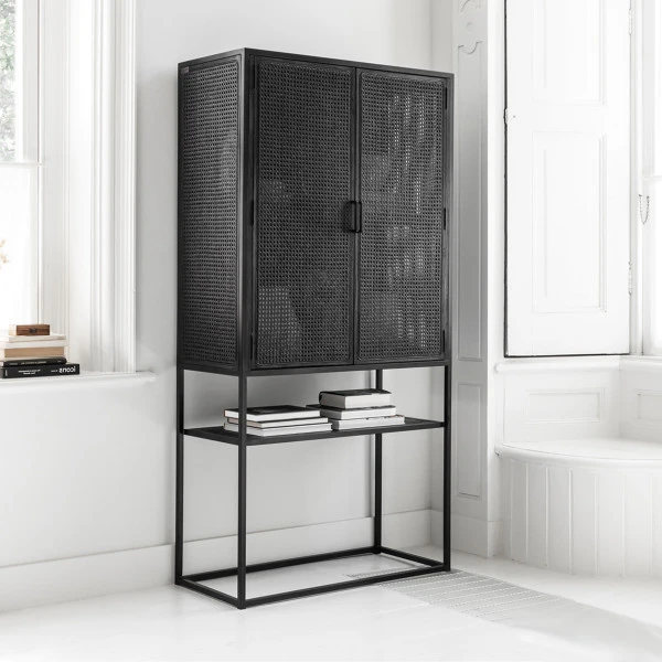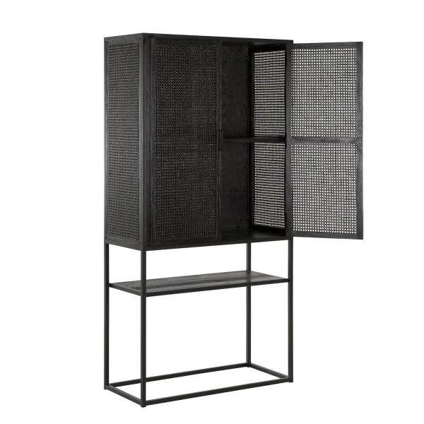 Deze Must Living Spiderman kast staat op hoge poten voor een stijlvol en speels effect. Je witte serviesgoed vormt een gezellig silhouet achter de rotan webbing deuren! Samen met het gerecycled hout zorgt het rotan voor een sfeervol accent. Bovendien combineert het zwart met elke kleur muur, vloer of gordijnen. In het open vak is nog plaats voor een stapel boeken of leuke decoraties.