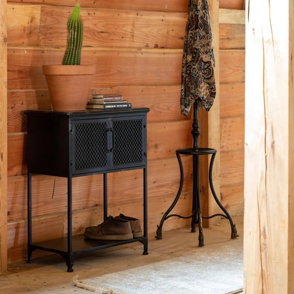 Lage zwart metalen wandkast