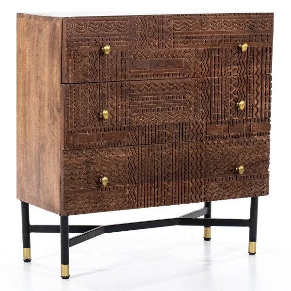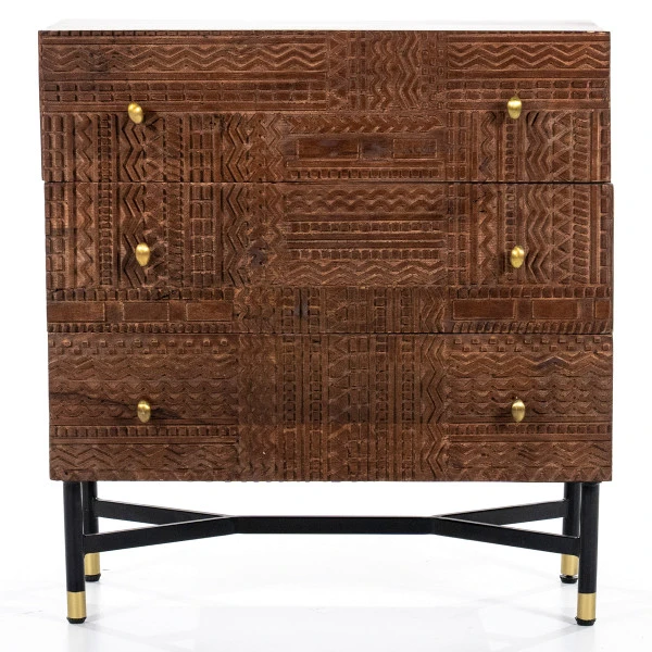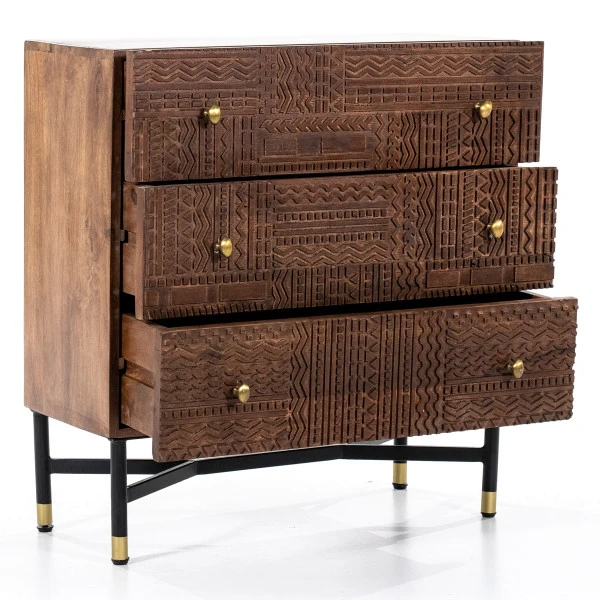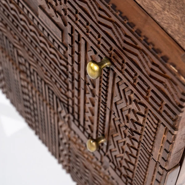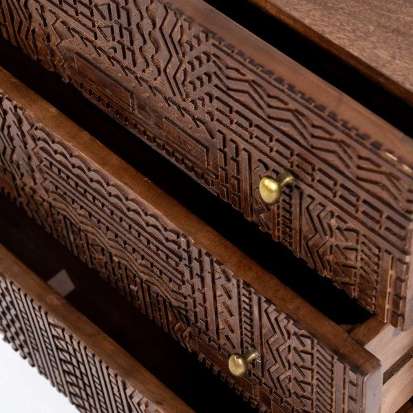 - Gemaakt van mangohout met houtsnijwerk op de lades