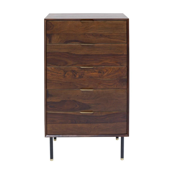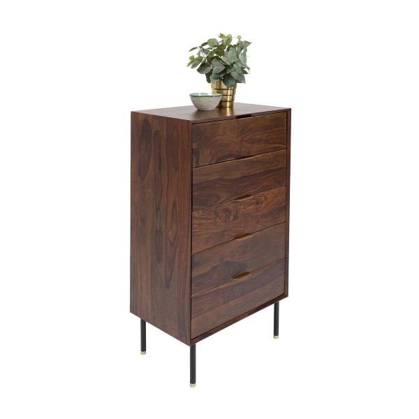 Wat de Kare Design Ravello ladekast zo stijlvol maakt zijn de messing details te midden van het warme sheeshamhout. Een design ladekast met retro elementen! Je kunt het kastje in de woonkamer gebruiken voor hobbymaterialen, post en losse rommeltjes. Of zet de ladekast in de eetkamer en berg er bestek, onderzetters en linnen in op.