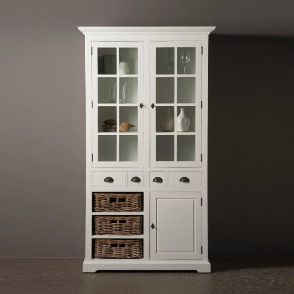 Zet de landelijke Tower Living Napoli vitrinekast in de woonkamer met je mooiste wijnglazen achter de glazen vensters; ook voor reissouvenirs of boeken is dan nog plaats. Kleine rommeltjes berg je netjes weg in de lades en in de koboo- manden die de vitrinekast een sfeervolle uitstraling geven. Of gebruik de landelijke vitrinekast in de eetkamer voor serviesgoed!