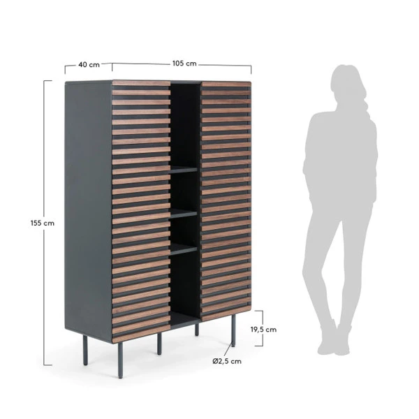 De Kave Home Kesia kast blinkt uit in stijl én sfeer. Stroken van hout geven de mat grijze deuren een speels karakter. Zet je mooiste theeservies en wijnglazen in de open vakken; achter de deuren kan het alledaagse serviesgoed staan! Of plaats de mat grijze kast met hout in de woonkamer en gebruik voor administratie, fotoalbums, spelletjes en speelgoed. Met een omvang van 105 bij 155 centimeter biedt de kast veel bergruimte.