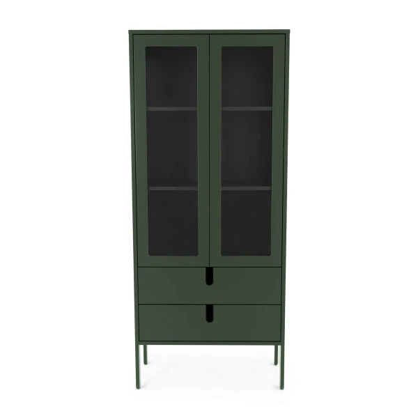 Deze hoge Tenzo Uno vitrinekast heeft een moderne uitstraling met een speels tintje. Een prachtig meubel voor je favoriete borden, soepkommen en koffiekopjes! Of gebruik de hoge vitrinekast in de woonkamer voor leuke decoraties. Je hebt keuze uit 5 verschillende kleuren gelakt hout: wit, groen, grijs, geel of blauw. Welke vitrinekast past het beste in jouw interieur?