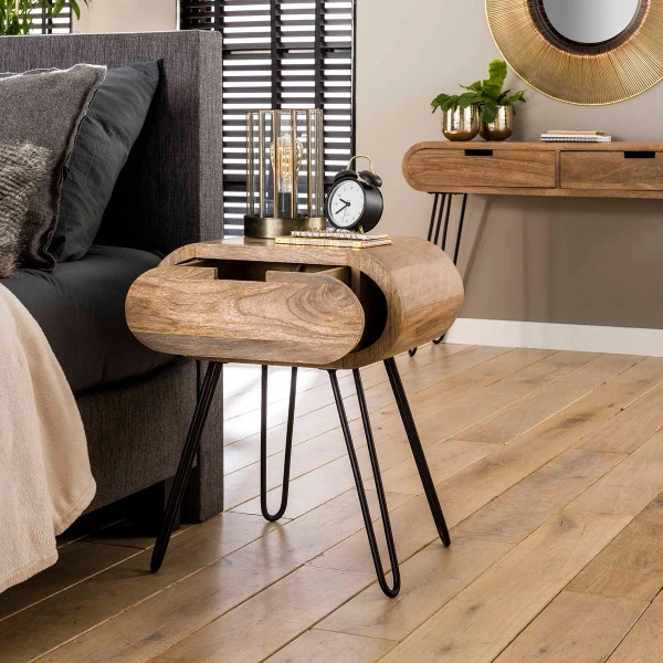 - Stoer nachtkastje met een natuurlijke uitstraling en robuuste afwerking
