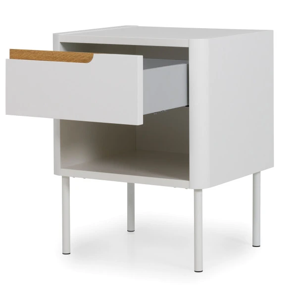 Een Tenzo Switch nachtkastje met een modern, Scandinavisch design. De eiken handgreep vormt een speels en natuurlijk detail in het strakke geheel! Daarbij heb je keuze uit een nachtkastje in wit of antraciet: welke past het beste naast jouw bed? Berg oordopjes, nachtcrèmes en je telefoon netjes weg in de lade; voor tijdschriften en leesboeken is plaats in het grote vak.
