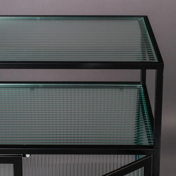 Je herkent de Dutchbone Boli serie aan de mix van zwart metaal en ribbelglas. Behalve dit compacte wandkastje vind je in de serie ook een hoge wandkast, een ribbelglas dressoir en een vitrinekast. Of zoek je nog een bijpassende salontafel?