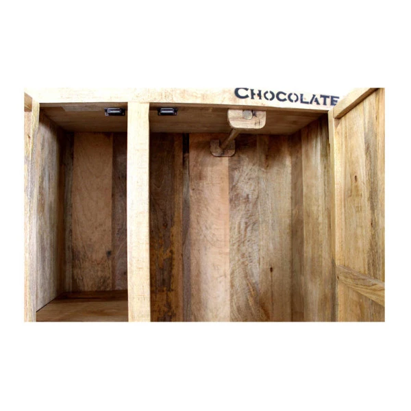 Met deze hoge wandkast op wielen creëer je een industriële look in huis! Speelse teksten zorgen voor een vintage accent, terwijl het mangohout veel sfeer brengt. Achter de deuren vind je 5 compartimenten in verschillende vormen en maten, zodat je de hoge wandkast voor allerlei spulletjes kunt gebruiken. In het grootste vak zit zelfs een roede verstopt: handig voor jassen of andere kleding!