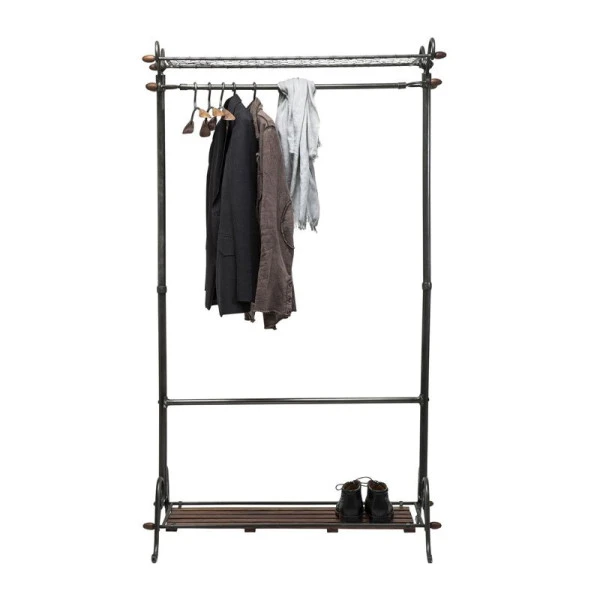 Het Kare Design Cosmopolitan kledingrek zorgt voor een warm welkom in je hal! De mix van metaal en hout gaat perfect samen met de sierlijke details in het design: een vintage geheel met karakter. Dankzij een stevige constructie staat het kledingrek stabiel. Hang je jassen aan de sfeervolle kledinghangers, geef je mutsen en handschoenen een plek op de hoedenplank en berg schoenen netjes weg op het speciale rek!