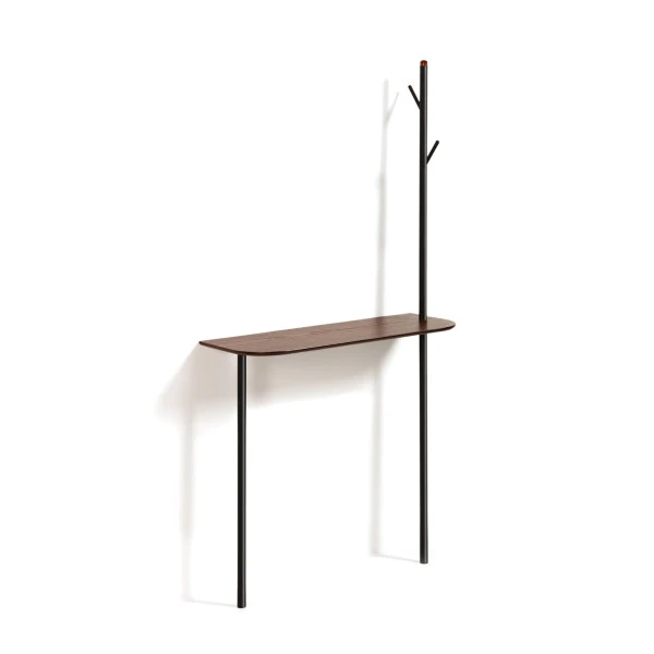 In de Kave Home Marcolina serie vind je moderne woonaccessoires met een minimalistisch design. Je herkent ze aan de mix van zwart metaal en walnootfineer! Behalve deze haltafel omvat de serie ook een staande kapstok en een bijpassende spiegel.