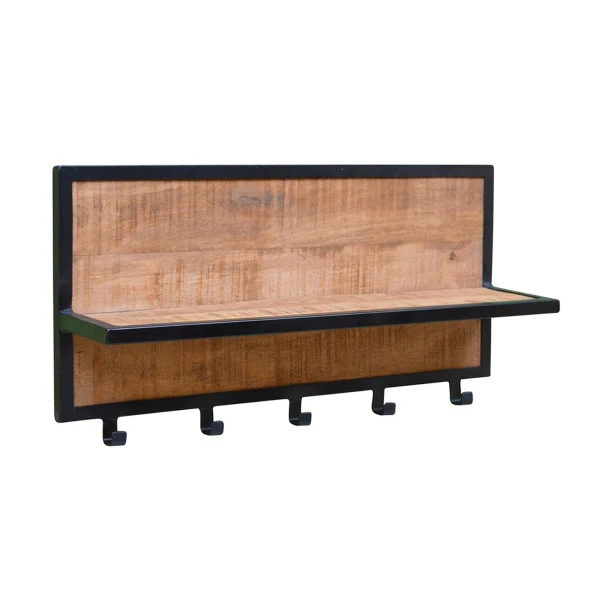 Deze Bodio Ognam wandkapstok heeft een paneel en plank van mangohout met een warme kleur. Zo zorgt de kapstok voor veel sfeer in de hal! Of gebruik de wandkapstok in de slaapkamer voor kleding die je nog wel een dagje aan kunt. Dankzij de mix van mangohout en staal gaat de wandkapstok mooi samen met een industriële woonstijl. Op het plankje is plaats voor mutsen, handschoenen of decoraties!
