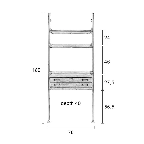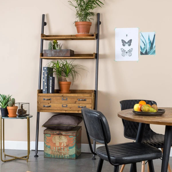 Dit wandrek van metaal met hout is eigenlijk een mix tussen een decoratieve ladder en een kastje. Op de twee bovenste planken kun je plantjes en leuke decoraties kwijt, terwijl er in de twee lades plaats is voor losse rommeltjes. Zo ziet je woonkamer er voortaan gezellig opgeruimd uit! Op de plank van hout boven de lades is bovendien ruimte voor hoge boeken, maar ook voor wijnflessen of een mooie vaas.