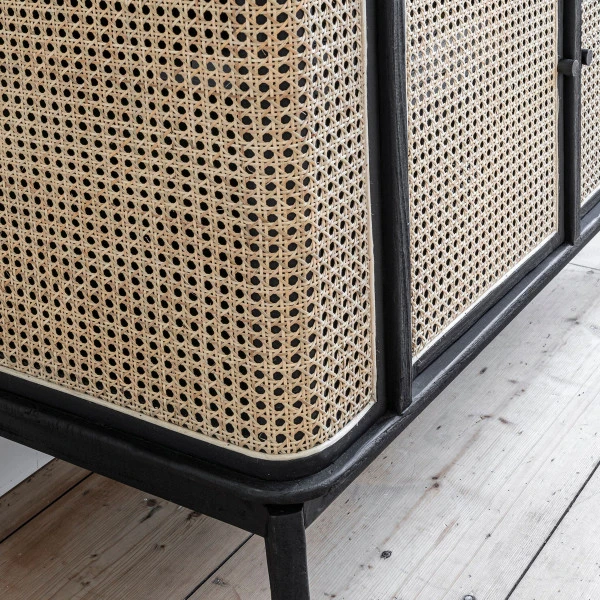 - Deuren en zijdes voorzien van naturel rotan webbing