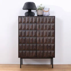 Net als deze wijnkast zijn de andere meubels uit de Bodio Curb serie donkerbruin: een warme espresso kleur. Slanke poten van metaal zorgen voor een strak design. Combineer de wijnkast met een bijpassende eettafel, een donkerbruine salontafel en een stijlvolle wijnkast voor een mooi geheel!