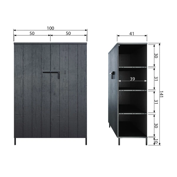 De houten Woood Bruut wandkast is stoer en lieflijk tegelijk. Is dat mogelijk? Blijkbaar: dat bewijst het sfeervolle design van de Bruut wandkast wel! De zwarte afwerking van het grenen zorgt voor een stoer effect, terwijl de verticale groeven een landelijke en romantische sfeer oproepen. The best of both worlds!
