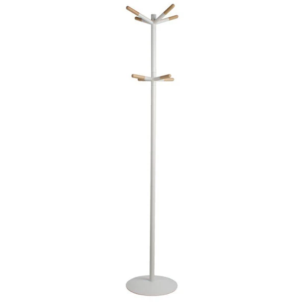 De Zuiver Wooden Tip kapstok is een mooi voorbeeld van Scandinavisch design. Speelse lijnen in een mix van wit metaal en hout, met een stijlvol minimalistisch ontwerp. De slanke staande kapstok vormt een bescheiden en toch bijzondere decoratie in je interieur!