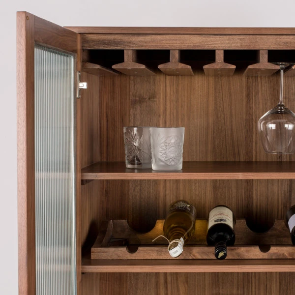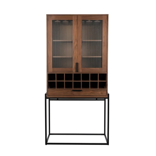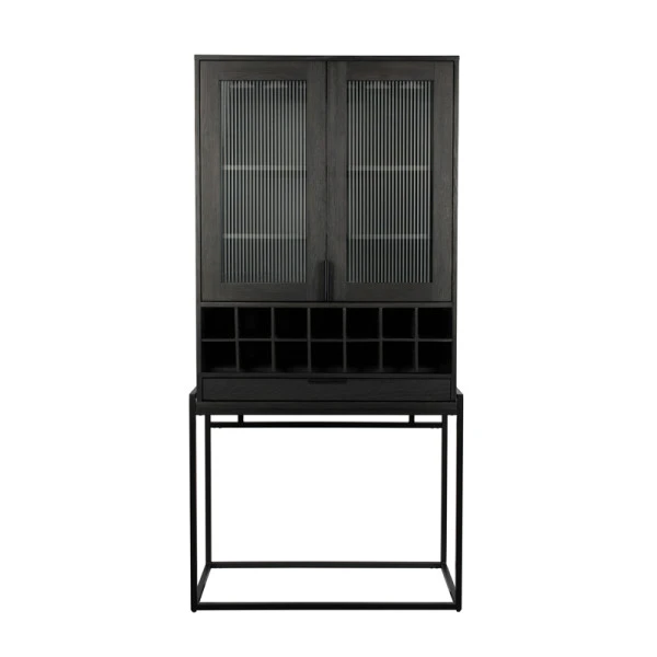 De Zuiver Travis wandkast biedt het beste van twee werelden: de stijl van modern design, en de nostalgie van vintage. In de wandkast is een wijnrek verwerkt dat plaats biedt aan 14 flessen. Zet je mooiste wijnglazen in de vitrine daarboven en berg onderzetters en openers op in de lade! Het geribbeld hard glas in de deuren geeft een bijzonder effect.