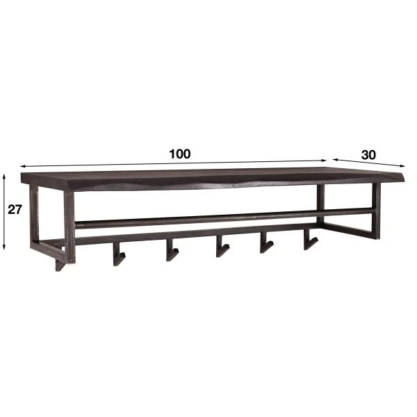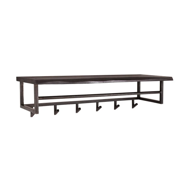 Deze zwarte kapstok met boomstam plank brengt een industriële look naar je hal. De kapstok neemt niet veel plaats in, maar drukt toch een stoer stempel op je interieur! Met 6 haken en een roede voor kledinghangers biedt de zwarte kapstok veel plaats aan jassen, tassen en sjaals. Op de boomstam plank is plaats voor accessoires of een gezellige decoratie.