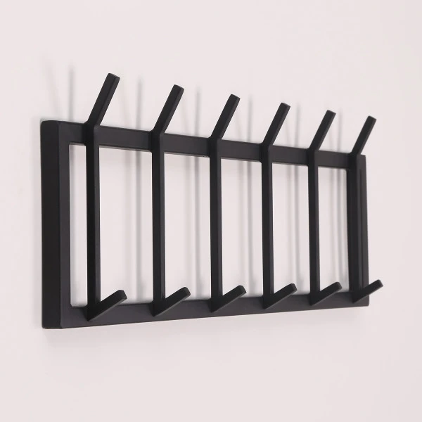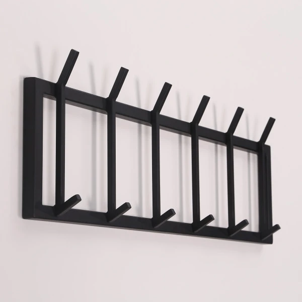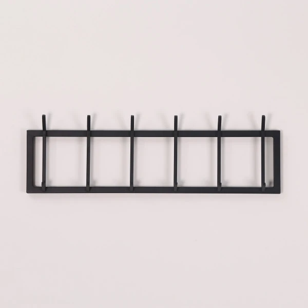 Deze zwarte kapstok steekt slechts 6 centimeter diep, en is daarmee ideaal voor in een krappe hal. Dankzij de 12 haken kun je aan de compacte kapstok toch veel jassen en sjaals kwijt! Het zwart gelakt metaal gaat samen met elke kleur muur of interieur. Bovendien heeft de kapstok een stoer maar strak design: mooi in een modern industriële woonstijl!